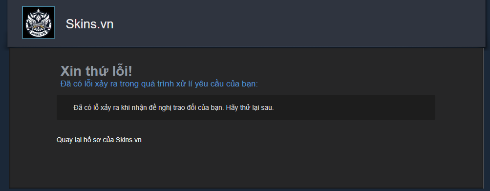 Steam hiện đang bị lỗi hiển thị trang trade offer với một số tài khoản như hình bên dưới.
